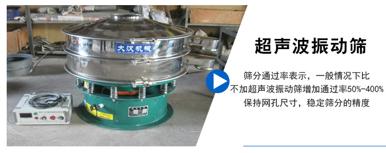 超聲波振動篩是旋振篩的一種衍生產品,將超聲波控制器與振動篩有機結合在一起,在多年的研究生產的旋振篩的基礎上,在篩網上面疊加一個高頻率低振幅的超聲振動波,超微細粉體接受巨大的超聲加速度,使篩面上的物料始終保持懸浮狀態,從而抑制粘附、摩擦、平降、楔入等堵網因素,從而解決了強吸附性、易團聚、高靜電、高精細、高密度、輕比重等篩分難題,使超微細粉篩分不再成為難事,特別適合高品質、精細粉體的用戶使用。